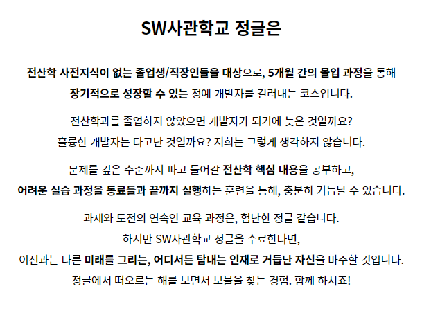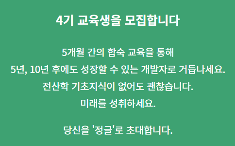 5개월 간의 합숙 과정을 거쳐 5~10년에도 성장하는 개발자로 거듭나세요